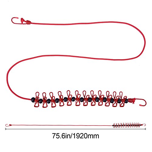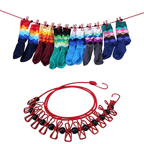 - Package contents: 2x elastic clotheslines | Each line has 12 coated metal clips and 13 plastic spacers