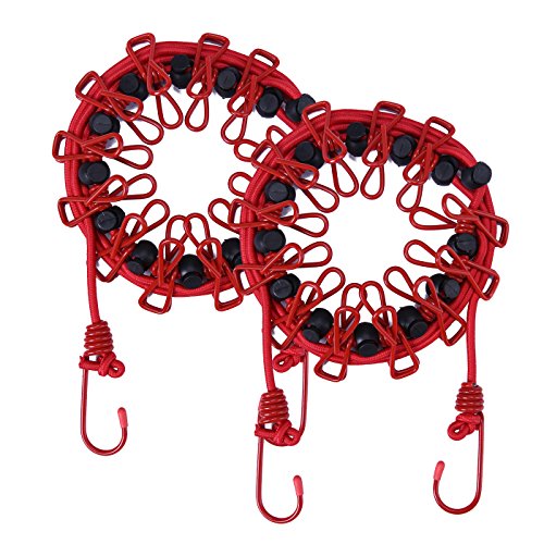 HDE 2 Pack Elastic Clothesline Portable Travel Stretch Bungee with Metal Clothespin Clips for Indoor and Outdoor Use Air Drying Rope Line