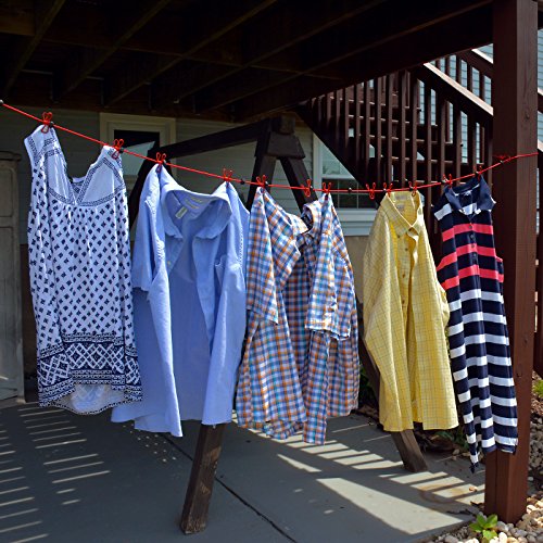 - Flexible and Functional | Elastic stretch clothes line is perfect for saving money on your electric bill at home but also portable and small enough for camping, RV's, and dorm room spaces as well