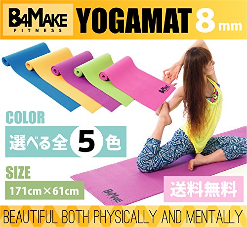 -. Feature : ヨガの必需品♪クッション性抜群で身体への負担を軽減します。美容と健康のエクササイズとして、定番人気のヨガやピラティスに欠かせないアイテム♪ / カラーバリエーションが豊富なB4MAKEのヨガマットは、耐久・耐水・弾力・床に対してのグリップ力が優れたPVC素材を使用。 / ヨガ初心者の方でも身体を痛めない安心の極厚8mmタイプ♪更にクッション性抜群の為、マットが床からズレずに安定します。ヨガだけではなく、トレーニングやストレッチを行う際にも使用できます。 / ※北海道・沖縄は別途送料ご負担となります。 / サイズ:縦171cm×横61cm×厚み8mm 材質 :PVC素材 重量 :約1.5kg