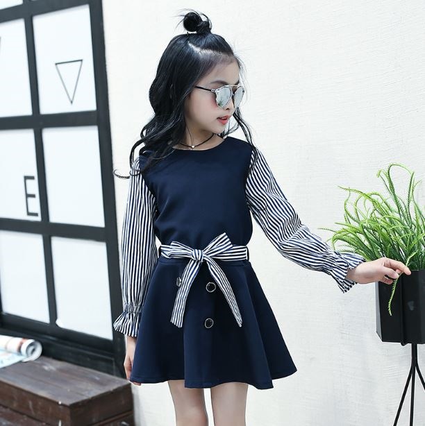 ストライプ柄とウエストリボンが可愛くオシャレ^^♬