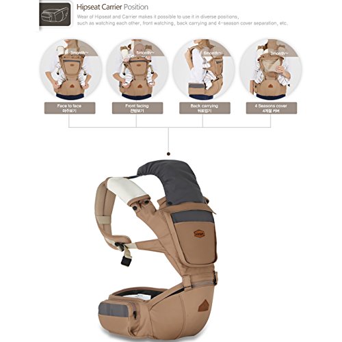 -. Feature : Made and Design in Korea / Components : Hipseat,Carrier,baby carrier body,Sleeping Hood,Organic cotton teething Pads / Able Age : 30days ~ 36month,Uable Weight : ~ 20Kg / Waist Size : 650 ~ 1,150 mm / Hipseat Carrier : 897g, Carrier : 367g