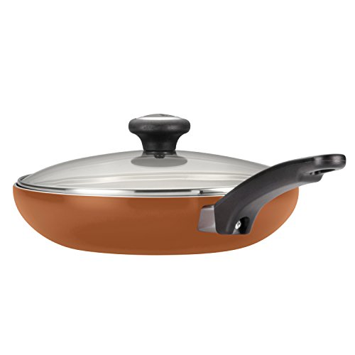 The Farberware high performance nonstick 17-Piece cookware set makes it easy to turn out complete, delicious meals. Farberware has brought performance, convenience and reliability to countless kitchens for over a century, and this cookware set continues that tradition for a new generation. Crafted from heavy-duty aluminum that heats evenly, the covered saucepans and Dutch oven feature long-lasting nonstick for effortless food release and easy cleanup. Both skillets and the griddle boast the unique dimpled surface of the smart glide nonstick system with top-quality nonstick, which improves durability and creates air pockets that transfer heat to food quickly. This Farberware cookware set gets the kitchen going for everyday home cooking with efficiency, and includes a durable steel nonstick baking sheet and six convenient Prestige nylon cooking tools. Use the utensils to flip pancakes on the griddle, stir marinara sauce in a saucepan or serve Angel hair pasta from the Dutch oven. Double-riveted handles on the cookware offer a confident grip, and shatter-resistant glass lids seal in heat and moisture. The cookware is oven safe to 350 Degree, the cookie pan safe to 450 Degree, and the entire set dishwasher safe for convenience. Busy cooks will appreciate the convenience of this inclusive Farberware high performance nonstick 17-Piece cookware set that helps get memorable meals on the table in no time.Feature