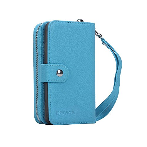 iPhone 6 Case -EgraceTM Apple iPhone 6 (4.7") Purse Case Premium Wallet PU Leather Zipper Case with Stand Flip Cover for iPhone 6 (4.7) (2014)(Blue)