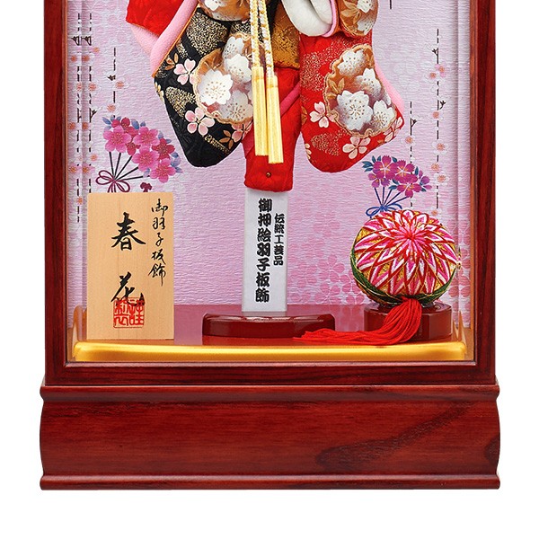 ・バック板には落ち着いた色目の羽子板セット。