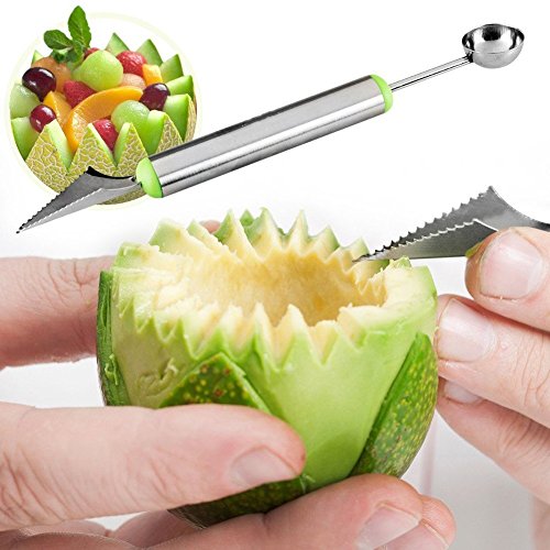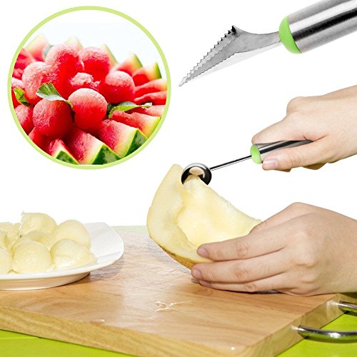 Studio : Alexius Publisher : Alexius Product Description It is a perfect fruit carver and melon baller. It is a high grade gadget that is easy to use. It is a two in one tool. You can make perfect balls out of fruits. You can make your dishes interesting by creating the fine balls of papaya, dragon fruit, mango, melon and others. The craving can cut the fascinating jagged lines. You can make your food and diet food more colorful and tempting with this two in one fruit carver and melon baller. You can decorate your ice-cream, dessert and cake with these lovely balls. You can make food tempting for your kids. We know that our children will love to eat colorful and attractive food items. So, this melon baller and fruit carver can make your kid to eat the food they once hate. Keep it away from the reach of children. Its edges are sharp that can harm your kids. It can also be used to remove the seeds of Cucumber, pears, winter squash, and zucchini. You can create potato balls, cinnamons for apple, etc. It is a perfect add-on in your kitchen. Thus, you must add this high-quality and versatile product. It is very convenient to use. Easy to clean and use. Alexius fruit carver and melon baller comes in green color. Buy it as soon as possible. You can also gift them on any special occasion to your friends or family members. They will appreciate you for gifting 2 in 1 carver and baller. 0 |
