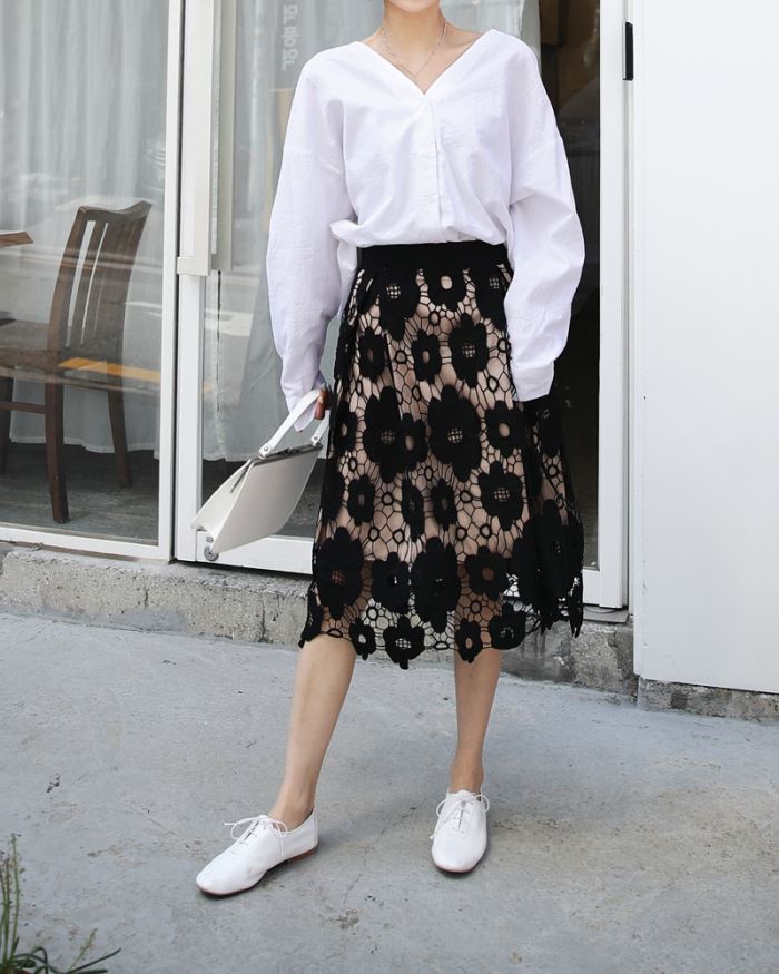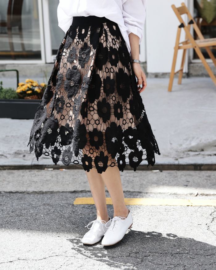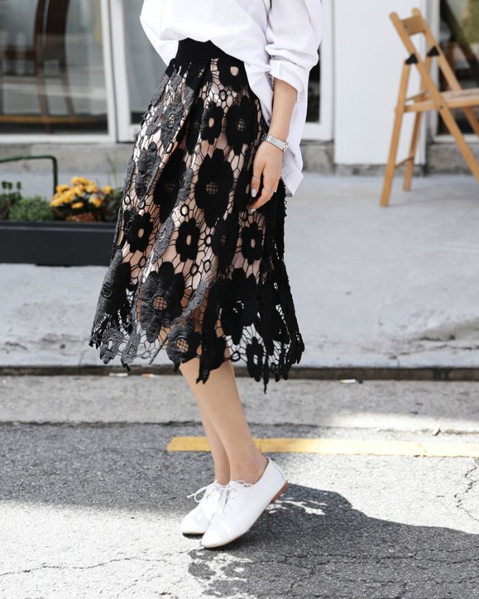 春らしさをアピールしてくれる花柄の刺繍スカートです♡