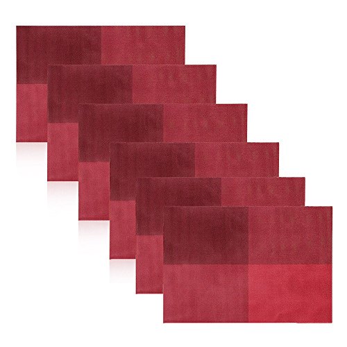 -. Feature : QTY & Size: Set of 6 vinyl placemats measure 11.8 x 17.1" (30*45 cm) each / Advantage: Protect table from scratches and stains; heat-insulation; wear resistance; durable & easy to clean upc (can be wiped clean with a damp sponge or cloth) / Materials: Stylish Crossweave Pattern with high quality and environmentally PVC materials / Application: Great placemat for indoors & outdoors holidays, parties, family gatherings, BBQ, everyday dining, etc. / Storage: Easily stored, it can roll up to put it away, also can be flatted when put out to use