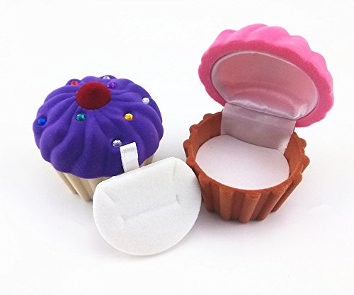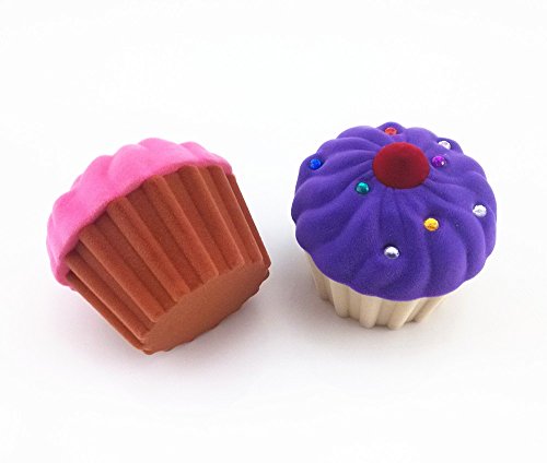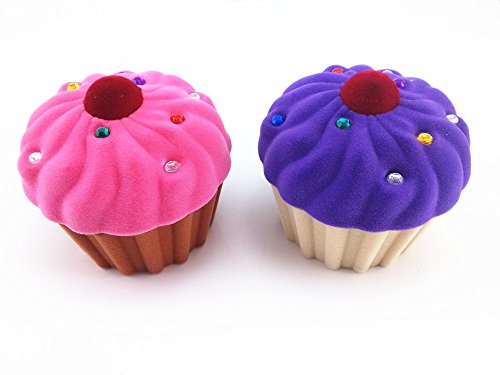 yueton Pack of 2 Cup Cake Shape Velvet Rhinestone Lovely Storage Box Candy Jewelry Gift Organizer Pill Case Container