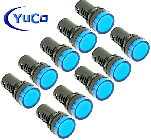 (10) YC-22B-2 Yuco European Standard Tuv Ce Listed 22MM LED Panel Mount Indicator Lamp Blue 120V AC/DC