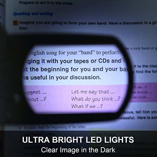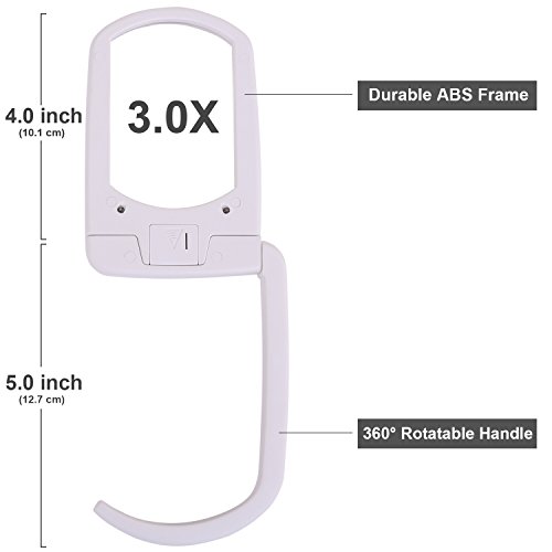 Cavogin illuminated Hands Free LED Magnifying Glass with Stand and Lanyard - 3X Lens Multipurpose Folding Lighted Magnifier for Reading,Repair, Inspection, Needlework and Craft