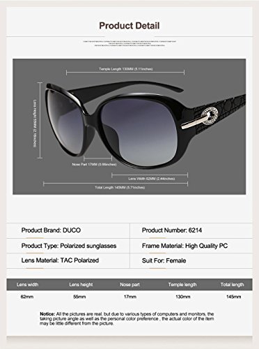 -. Title : Duco Women's Shades Classic Oversized Polarized Sunglasses 100% UV Protection 6214