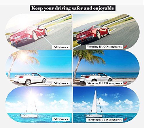 -. Feature : REAL UV400 PROTECTION--DUCO lenses are engineered to block 100% of all harmful blue light up to 400 nanometers including UVA(320-400 nm),UVB(280-320 nm)and UVC(100-280 nm). / FASHION AND FRAME--It is made of high quality polycarbonate, lightweight but durable,comfortable.Sunglasses have long been associated with celebrities and film actors. DUCO shades are designed unique for you.Amazing quality and oversized frame, is fashion in modern. / TAC POLARIZED LENS--is made from a special material which is impact and scratch resistance, it will not be broken even if you hit the lens with hammer. It offers a high level of optical clarity, it is 50 times more impact resistant than optical glass. DUCO glasses comply with EN 1836:2005 and US FDA 21 CFR 801.410 and FDA dropball test. / LIFETIME BREAKAGE WARRANTY ON FRAME &LENS--All DUCO Sunglasses are provided lifetime warranty. Whatever the reason is, you can have Lifetime Breakage Warranty on Frame & Lens. / 30 DAY MONEY BACK GUARANTEE--100% satisfaction guaranteed. We are not only selling sunglasses but also providing excellent customer service. We promise if you are not happy with DUCO glasses within the first 30 days, we will refund you without any reason and take care of the returning shipping fee. SO NO RISK ON TRY!