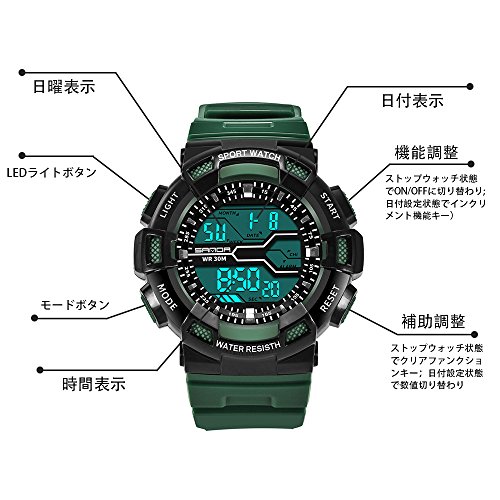 원본상품명: R-timer(ア?ルタイマ?)防水腕時計 多機能 LED デジタル表示 日付曜日表示 回?ベゼル 夜光 50M防水スポ?ツウォッチ 大文字盤 (新品-ア?ミ?グリ?ン)