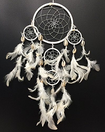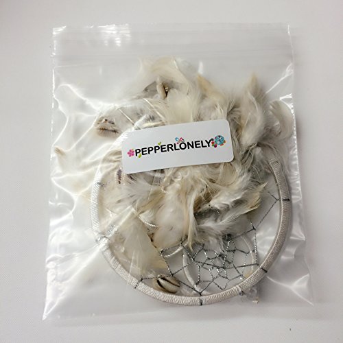 PEPPERLONELY Dream Catcher Cream White Feathers 4.5 Inch Diameter, 18 Inch Long