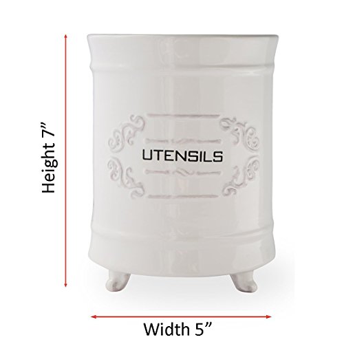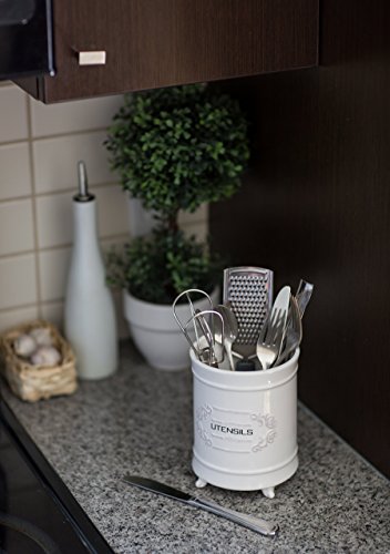 Classic Details for Your Modern Home Designed with French Country style and of exceptional quality that is at once perfectly casual and elegant. Evokes the romance of an earlier era, when everyone's favorite place to gather was in Nana's kitchen. A Stylish Home for Spatulas Serving Spoons Even ordinary cooking and baking utensils look a little fancier resting in this fine ceramic crock holder. Safe to put in the dishwasher. Resists cracks, chips, scratches and stains. Large enough to hold all your favorites. The perfect silverware caddy for informal gatherings. Kitchen Organization and Storage with a Touch of Class Whether used alone or mixed in with another collection, you'll appreciate the style and durability of this unique ceramic utensil caddy. Store all your spatulas, ladles, tongs, spoons and whisks. Don't Just Use it in the Kitchen Works great as a pen and pencil holder in a sophisticated home office or stuffed with art supplies like paint brushes. Anywhere you want a vintage or retro accent to dress up your home. Order Your New French White Ceramic Utensil Holder Today and Add a Touch of Vintage Class to Your Kitchen 0 |