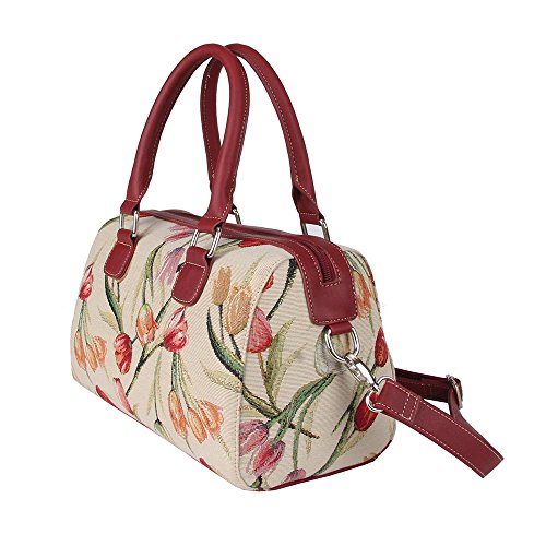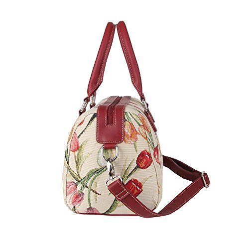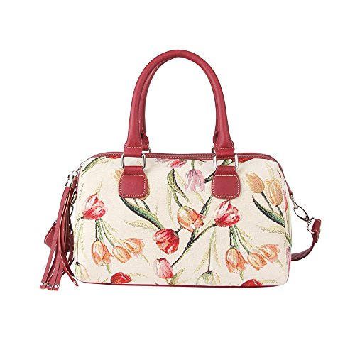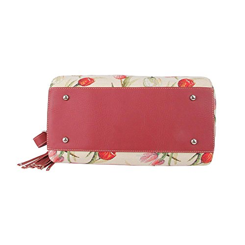 Signare Womens Fashion Tapestry Tassel Top Handle Shoulder Bag in Tulip White Design