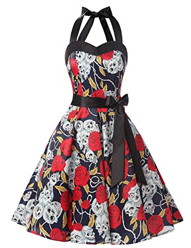 Dresstells is a Registered Brand dealing in various Dresses and Accessories. We are committed to providing high-quality fashion dresses and accessories for all of our customers! This knee length halter 50s rockabilly polka dots cocktail dress matches with our Women's Vintage Rockabilly Petticoat Skirt Tutu 1950s Underskirt perfectly!