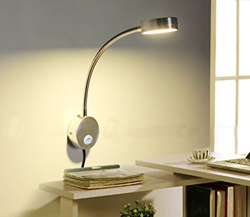 - 1 x Gooseneck LED Wall Reading Light (5W, Warm Whit lighting, Silver)
