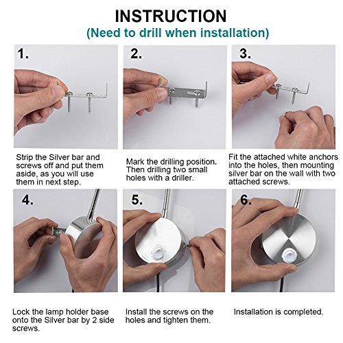 ★ (Note:Need to drill when installation) Versatile - Reading, working, studying, art work showing. Ideal for use in bedroom, dorm room, kids room, garage, RV or living room and any place that need lighting.
