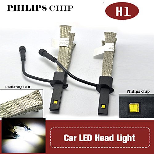 Rolinger 5th Generation LED Headlight Kit - H1 Philips Bright 40W 5000LM 360 Degree LED Headlight Bulbs Conversion Kit with Flexible Tinned Copper Braid - Fit for Honda BMW Audi Acura Kia Lexus Nissan Volkswagen