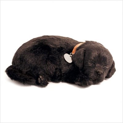 PP91-22BV6 Click below to watch demo of puppy actually breathing!: -This adorable dog which actually breathes offers a real pet ownership experience without the hassles and expense; say goodbye to feedings and vet bills and say hello to lots of love and cuddles. -Includes bed, brush, collar, pet tag, 1 D Alkaline battery, red pet carrier and adoption certificate. -The Labrador Retriever is a fun ball of energy; they crave human attention and need to feel like they are a member of the family; they love the outdoors and especially love swimming. -Made of 100pct synthetic fur. -Conforms to ASTM international F 963 toy safety requirements.Feature