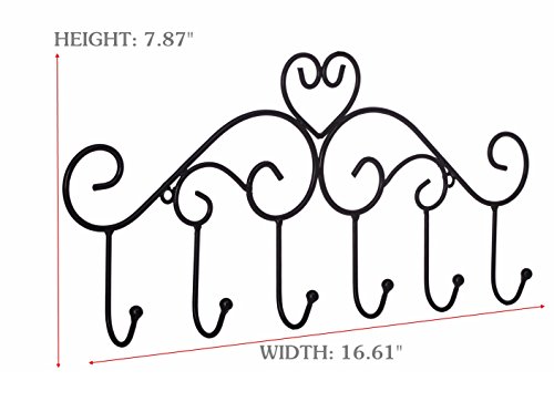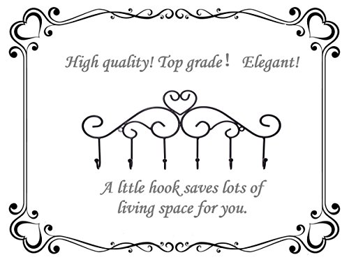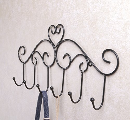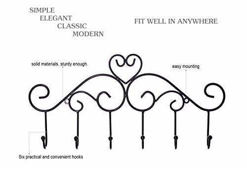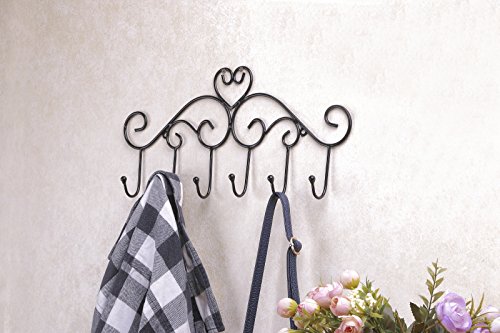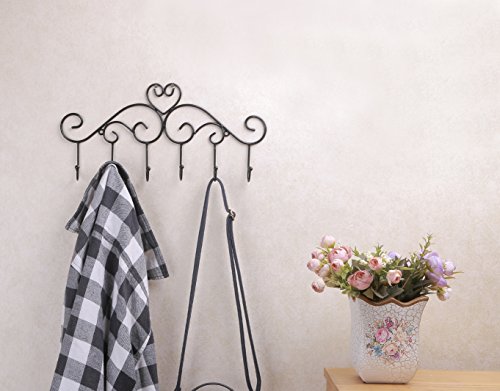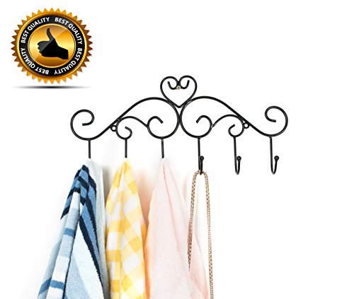 Wall Mounted Metal Hooks/Hangers - Door Hangers/Hooks - Decorative Organizer Rack with 6 Hooks for Keys Clothes Coats Hats Belts Towels Scarves Pots Cups Bags Kitchen Bathroom Garden (Black)