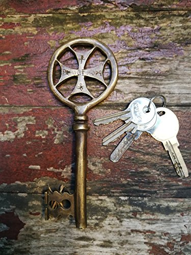Maltese Cross Skeleton Key,Large,6.37 inch,Solid Brass,Engraved,Church Monastery key