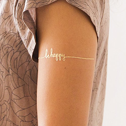 Tattly Temporary Tattoos, Be Happy/Gold, 0.1 Ounce