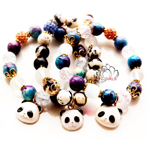 -. Title : 天然石 パワーストーン 最高品質激安 パンダ panda 3種類が選べる オーラ水晶 コップ ホワイト パープル ブラック 瑪瑙 ブレスレット レディース キッズ アクセサリー 全品ギフトラッピング