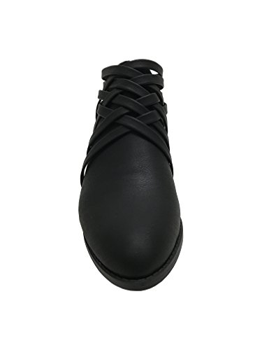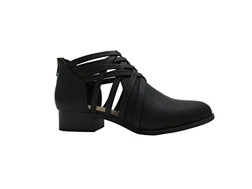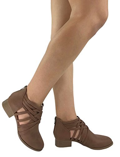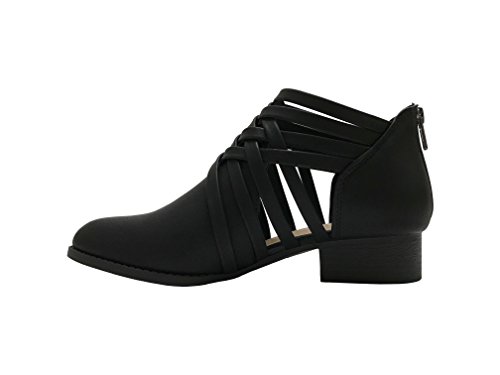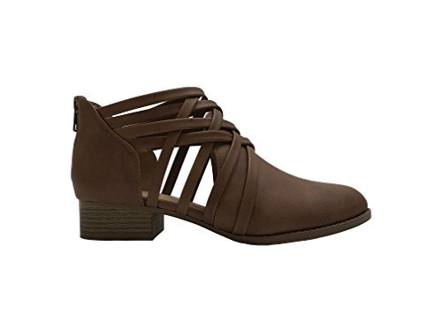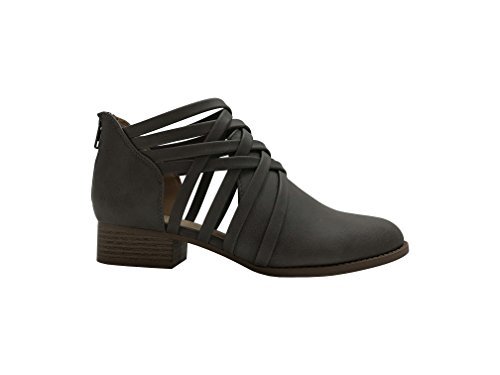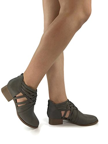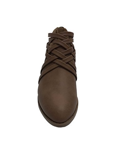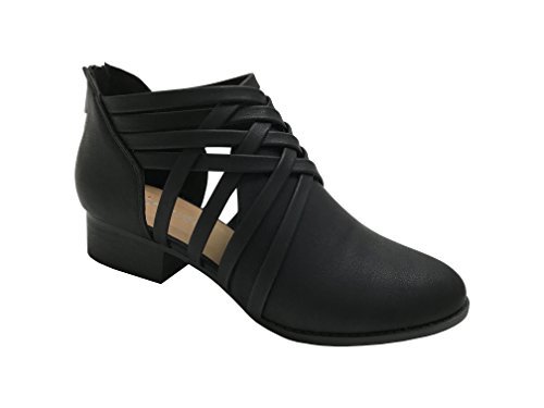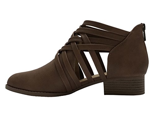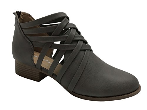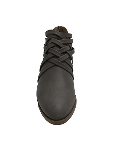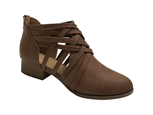 City Classified Women's Ankle Bootie Woven Strappy Weeve Criss Cross With Low Chunky Heel