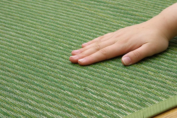 凹凸感を織り方で出したシンプルなデザインに仕上げたい草カーペットです。い草には1.空気の自然浄化作用、湿度の調節作用などがあります。また汚れにくく、使用するうちに黄金色に変化し、味が出ます。い草に青森ヒバ加工を施しています。(抗菌・防臭効果)フローリングを傷つけにくいよう、裏には不織布を貼っています。