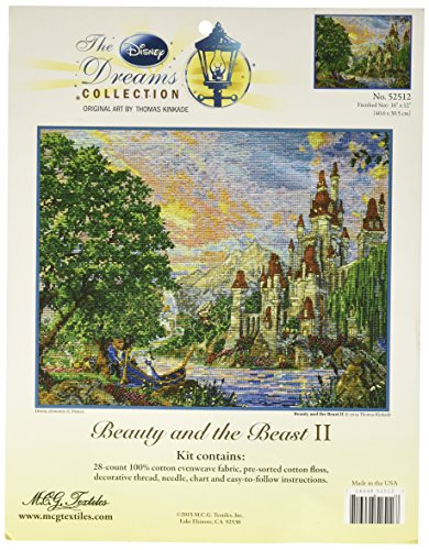 M C G Textiles 52512 28 Count Disney Dreams Collection By Thomas Kinkade Beauty & Beast II, 16" x 12", Assorted