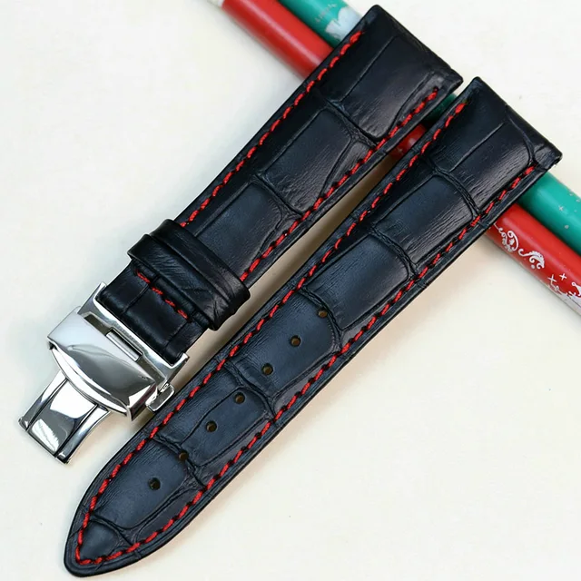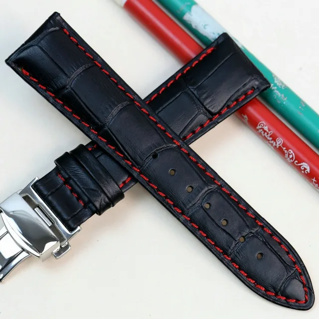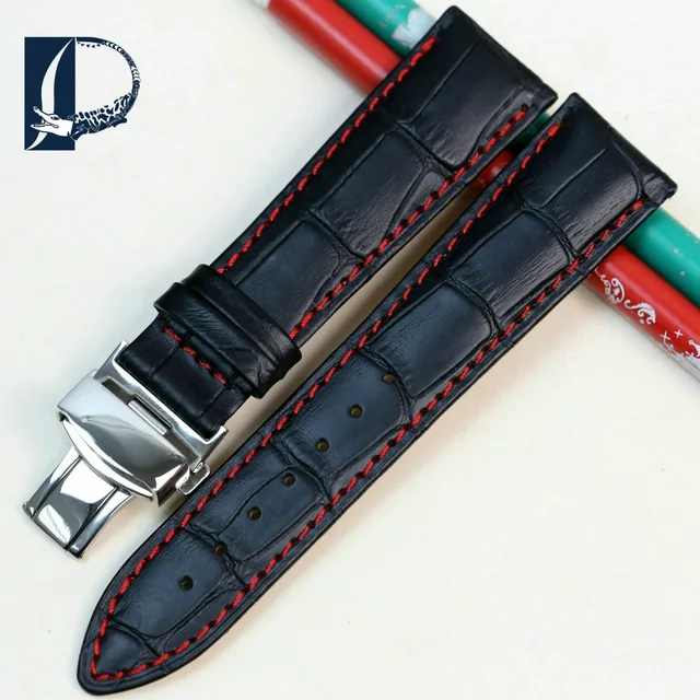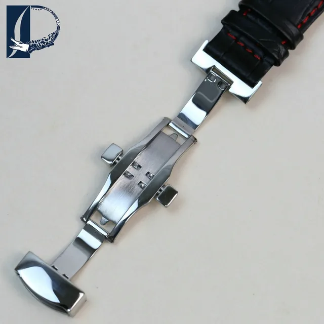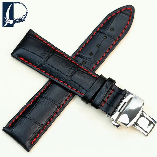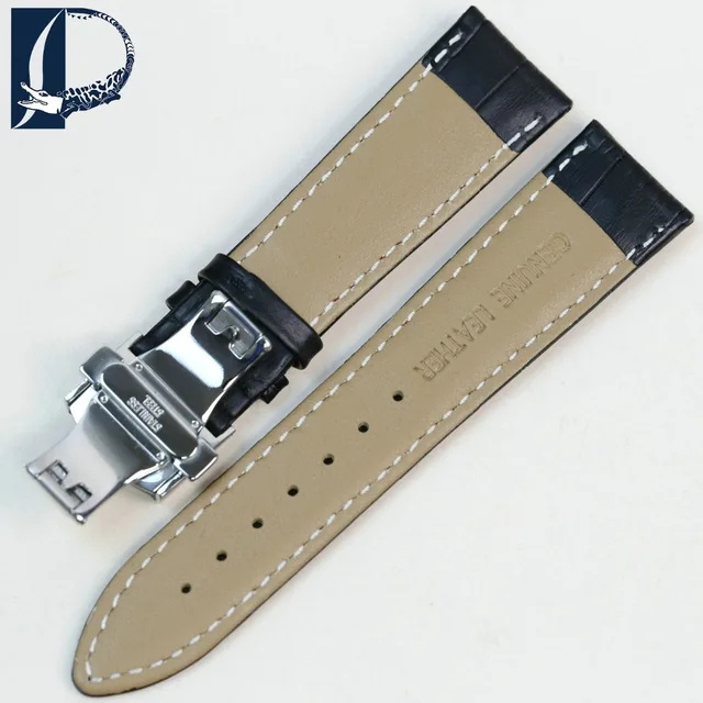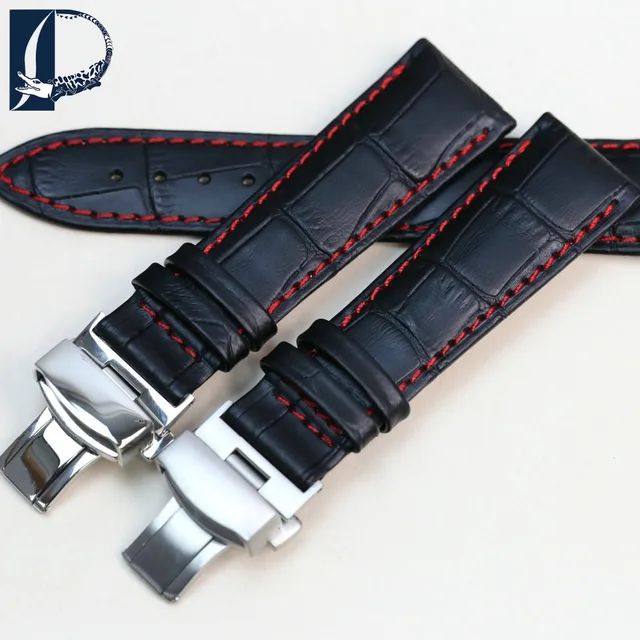 Pesno 정품 가죽 손목 시계 butterfly 버클 밴드 악어 곡물 블랙 팔찌 시계 싸이즈 18 19 20 21 22 미리메터