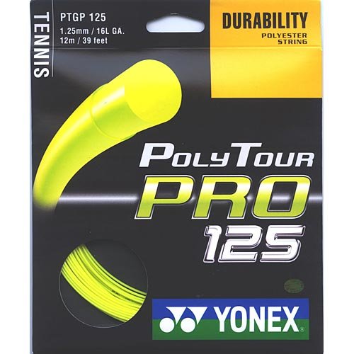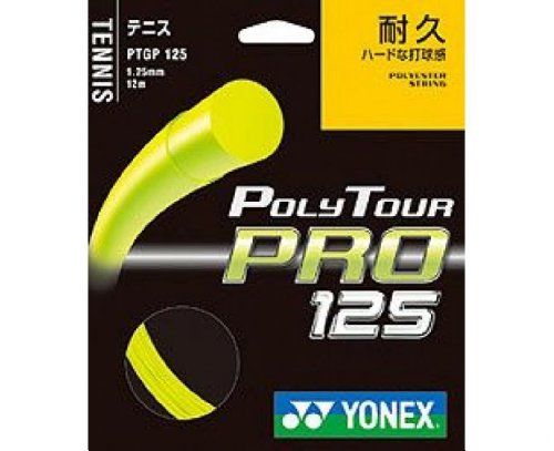 Studio : Yonex Publisher : Yonex Binding : Misc. Product Description The Yonex Poly Tour Pro 125 16L Tennis String is a durable string that is a great for big hitters. It provides a comfortable feeling while the softer string bed suppresses shoulder and elbow fatigue. 0