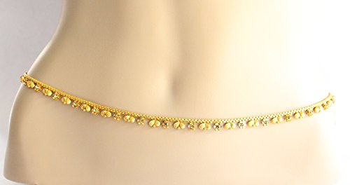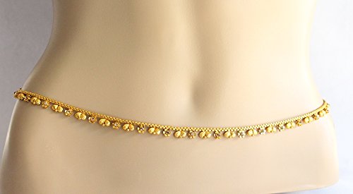 Product Description~~~ This Listing is for ~~~ * Beautifully designed gold belly chain embedded with crystals. * Would look sexy with sari belly dance costumes. * Adjustable from 26 to 42 inches.0