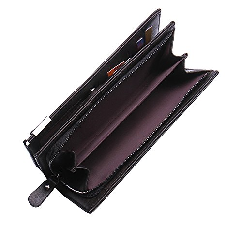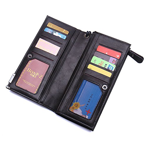 -. Feature : Material: Outside PU Leather + Inside Polyester; Shiny Metal Zipper Closure; / Dimensions: Approx 20(L)*10(H)*3.2(W)cm; / Pockets: External, 1 Front Button Pocket For Holding Frequently Used Stuff; Internal, All Stuff Can Be Well Organized Inside. 3 Compartments And 2 Zipper Pockets For Wallets, 12 Small Pockets For Cards. / Suitable: Holding Money, Credit Card, Club Card And So On; / Service: Enough Stock. We Also Provide And ODM Service For Bulk Order;
