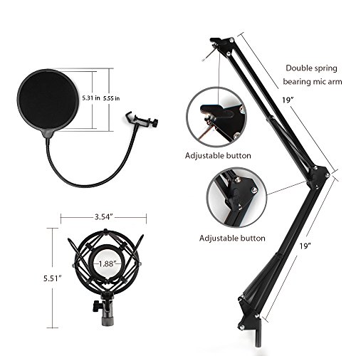 -. Title : Podcast Microphone, MAONO Rechargeable Condenser Microphone with Boom Arm Microphone Stand, Shock Mount, Pop Filter for Koraoke, Skype, YouTube Recording …