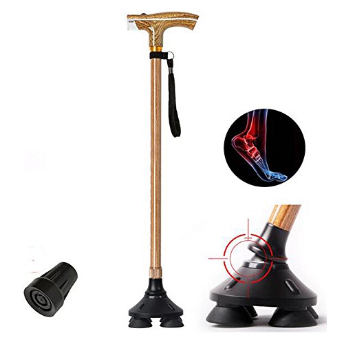 -. Title : 杖 軽量 自立式 4点杖 / LEDライト搭載 高さ調節 伸縮可能 ステッキ 夜間散歩/ 母の日 プレゼント 【改良版】4点杖と1点杖の間を自由に切り替え