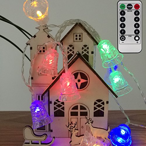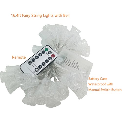 Bell Fairy String Lights BABALI Battery Operated Remote Control Outdoor Indoor Waterproof 8 Modes 16.4FT 40 LED Multicolor String Lights with Timer for Party Holiday Home Decoration