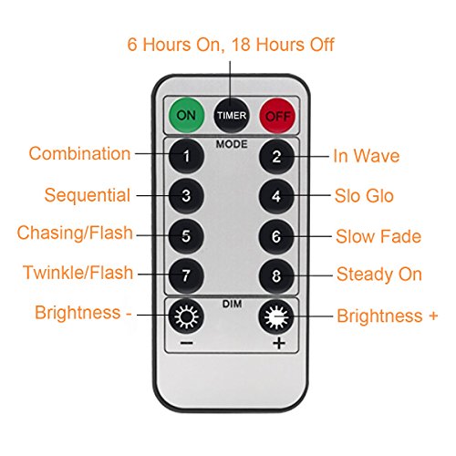 - REMOTE CONTROL 8 MODES WITH BRIGHTNESS DIMMABLE- You can simply press the button of remote controller to turn ON/OFF and operate the string lights to display 8 different modes, 10 level brightness dimmable from bright to dim, you can operate the fairy string lights just as you like.