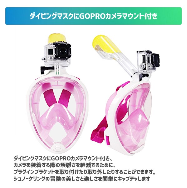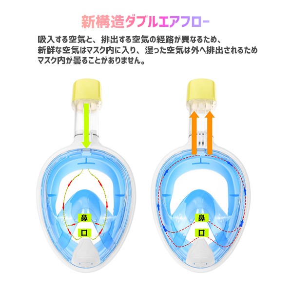 ・浸水防止 水の浮力により、弁が上下移動することで 空気の出入り口をコントロールができます。 ・曇り防止 マスク内に呼吸チューブが内蔵しており 空気循環で目元を曇りにくくしてくれます。 ・180°の広い視野 180度と視界も広いので 海の中の景色を思う存分楽しめます。 ・マスク内での呼吸は自由自在 水中で、口、鼻両方での呼吸が可能。 ・便利な排水弁つき マスクの底部にあるバルブをあパージして、 ヘッドを持ち上げたときに水を排出します。 ・新構造ダブルエアフロー 吸入する空気と、排出する空気の経路が異なるため、 新鮮な空気はマスク内に入り、 湿った空気は外へ排出されるため マスク内が曇ることがありません。 ・ダイビングマスクにGOPROカメラマウント付き ダイビングマスクにGOPROカメラマウント付き、 カメラを装着する際の煩雑さを軽減するために、 プラグインブラケットを取り付けたり取り外したりすることができます。 シュノーケリングの冒険の美しさと楽しさを簡単にキャプチャします |