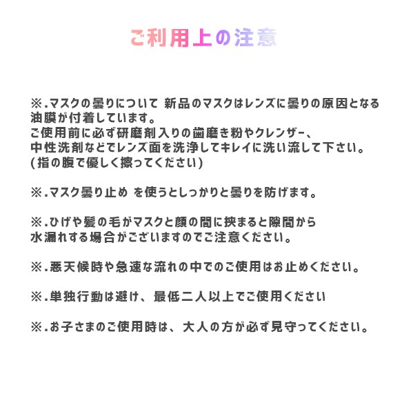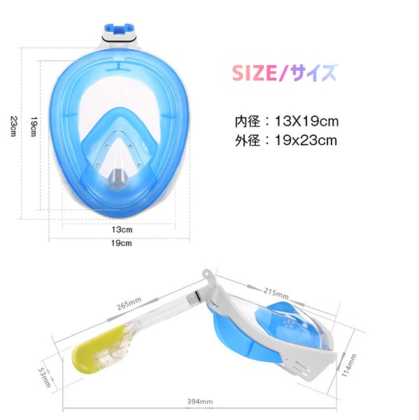 180度のクリアワイドビジョン 広いので海の中の景色を思う存分楽しめます。 柔らかいシリコンを素材として 採用しているのでお肌へも低刺激。 レンズ部分は安全性の高い割れにくい ポリカーボネートを採用しております。 新登場のフルフェイス型ダイビングが 普通のダイビングより もっと大きい視野が眺めれます。 180度深海の全景を眺め、 より完全な水中の世界を楽しみます |