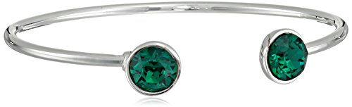 OROCLONE SILVER PLATED 10MM EMERALD SWAROVSKI CRYSTAL MAY BANGLE BRACELET, 2.25"