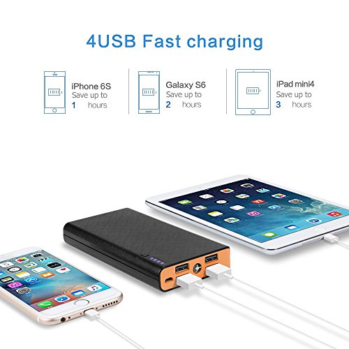 -. Binding : Wireless Phone Accessory -. Brand : Fritesla -. Feature : Super capacity battery: 20000mah. It charges the iPhone 6 up to 10 times. Charge once and it keeps the electricity for weeks. / Fast charge: 4 USB ports can charge up to four devices simultaneously. Save charging time nearly in half on 2A port. / Great Functionality: 4 USB ports make it convenient to share with friends. Flashlight function facilitates the use at night. 4 LED lights indicate the remaining charging capacity. / Stylish appearance: high grade material adopted, anti-skidding and frosted humanizing design will make you feel more comfortable. / Built-in multiple intelligent security protections: overcurrent, overvoltage, overload and short circuit protection. -. Label : ANPOW -. Manufacturer : ANPOW -. PackageQuantity : 1 -. ProductGroup : Wireless -. ProductTypeName : WIRELESS_ACCESSORY -. Publisher : ANPOW -. Studio : ANPOW -. Title : Fritesla 20000mah Power Bank Portable Charger for Smartphones