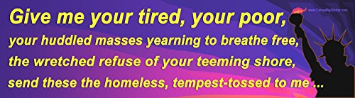 -. Title : Give me your tired, your poor... Immigration Bumper Sticker features Statue of Liberty