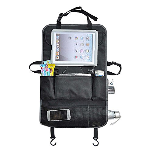 -. Feature : EASY FOR YOU - FUN FOR KIDS! This back seat organizer makes road trips and driving to and from school so much better! Kids love the media holder so they can watch movies and play games on the tablet. Their drink or water bottle won't end up on the floor and the favorite stuffed animal can be within easy reach. Moms love that the car can stay clean and so organized with oodles of pockets - more than 10! Even the most messy passengers can be contained and entertained! / NO MORE RUINED UPHOLSTERY- How many times have you heard the thumping from the back seat of a pair of boots or tennis shoes marking up the soft fabric of your backseat? The Travel Nanny has waterproof, tough, fabric tightly strapped to your seat so the days of tears and marks are behind you. This is YOUR NEW CHILD-PROOF SEAT GUARD / OTHER USES- Hang from your umbrella stroller for an easy way to carry your wallet, keys, phone, headphones, waterbottle, coffee, umbrella etc! Hang in your laundry room, closet, or kitchen to hold your tablet and watch your favorite show while you work. Strap on to the crib to play lullabies or baby cartoons, load with diapers, wipes, powder and extra clothes to make baby care a snap! / 100% NO HASSLE GUARANTEE - The Score Keeper is a high quality product and we take your satisfaction seriously! If you are less than impressed with our product, let us know and we'll make it right in a hurry. No hassles! - Click "Add to Cart" to buy now! - / WORKS IN ALL AUTO MAKES: Whether you have a truck, van, mini-van, SUV, wagon, sedan, or even a sports car- The Travel Nanny will fit your car!