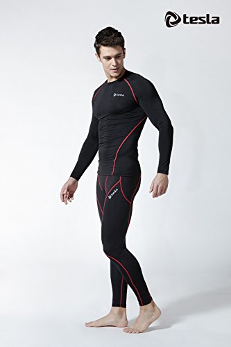 TM-P16-BKRZ_Small Tesla Men's Compression Pants Baselayer Cool Dry Sports Tights Leggings P16