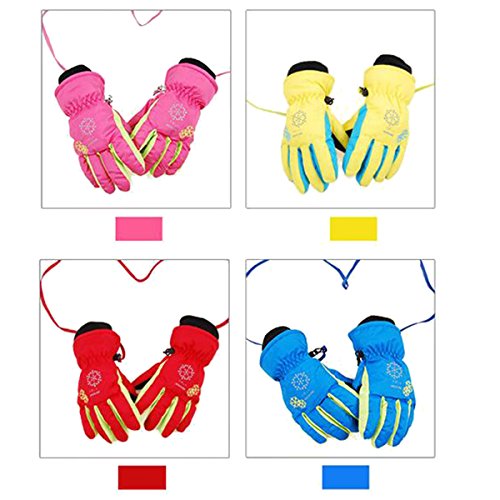 Specifications: - Material: Polyester; Fleeces Lining - Color:Rose Red; Blue; Yellow -SIZE: -XS: 4-5 Year (from bottom of palm to fingertips: 2.16 "; across palm: 3.14 "; glove length: 8.26 ") -S:7-8 Year (from bottom of palm to fingertips: 2.36 "; across palm: 3.54 "; glove length: 9.44 ") -M:9-12 Year (from bottom of palm to fingertips: 2.75 "; across palm: 3.93 "; glove length: 10.23 ") 0