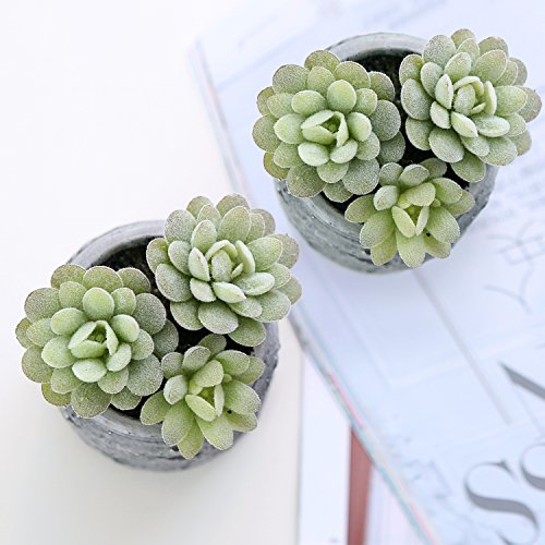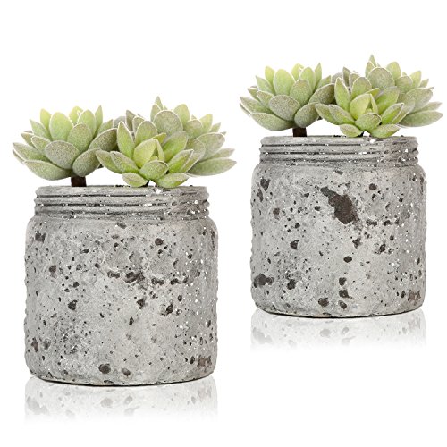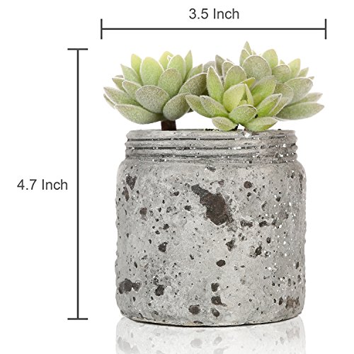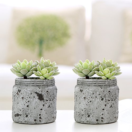 Mini Realistic Artificial Green Succulent Plants in Vintage Distressed Gray Ceramic Jar Pot, Set of 2